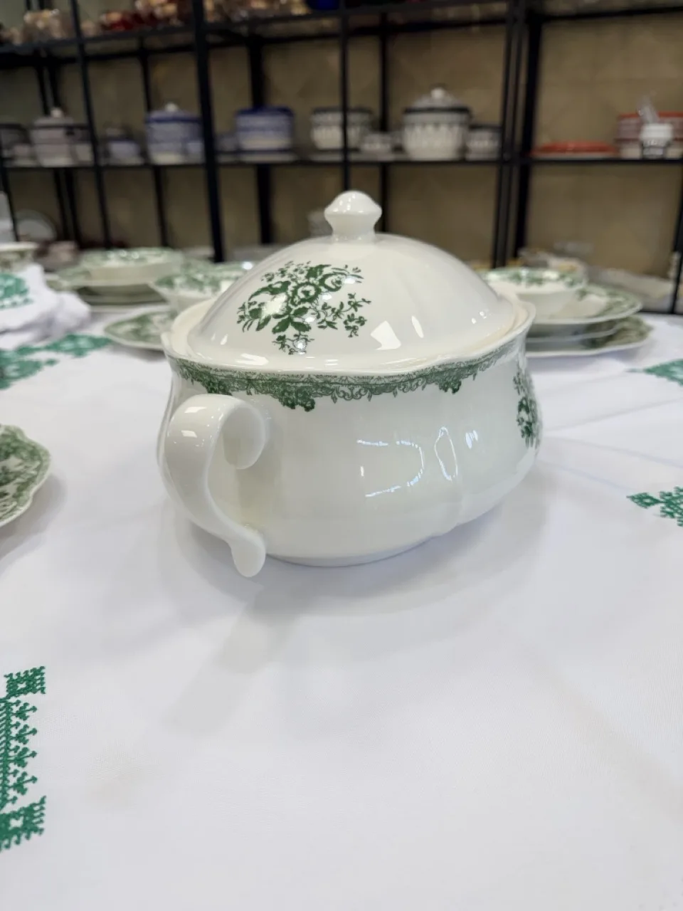 La vaisselle peut être en porcelaine, en céramique, en verre, en métal ou dans d’autres matériaux.