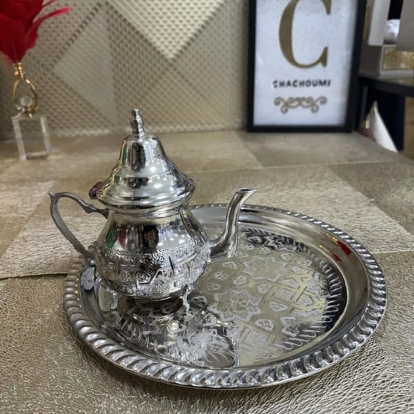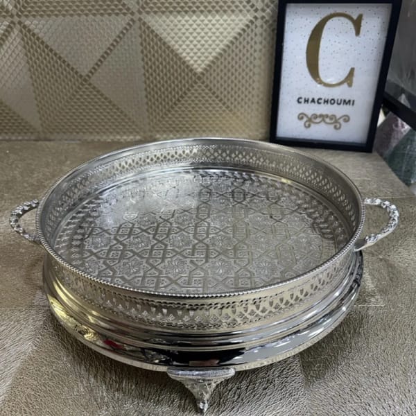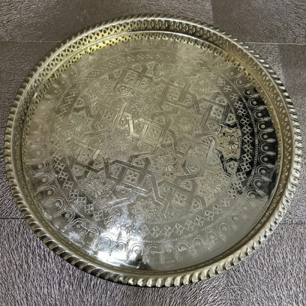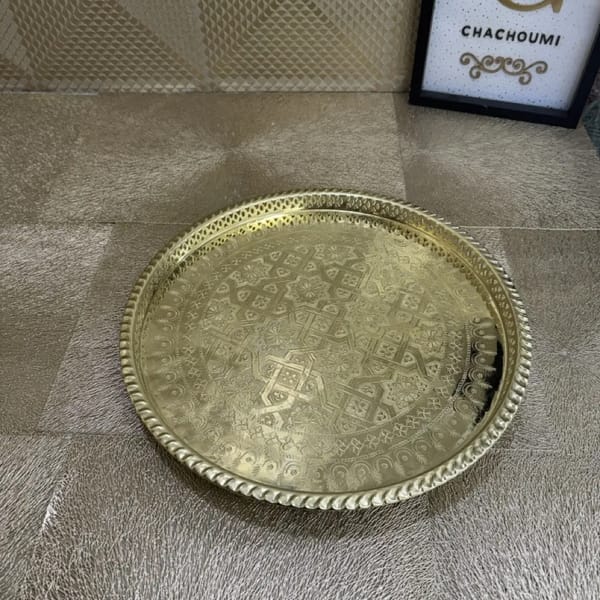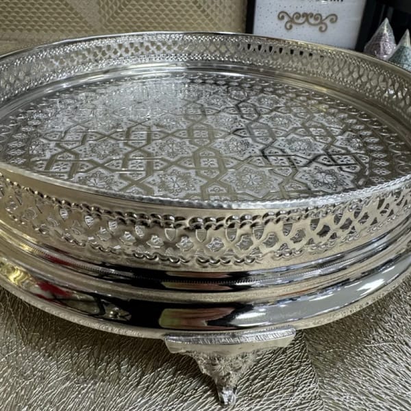 Le prix initial Ă©tait : 250,00 €.190,00 €Le prix actuel est : 190,00 €.Plateau Sinya marocain argentĂ© cuivre grand 42 cm
