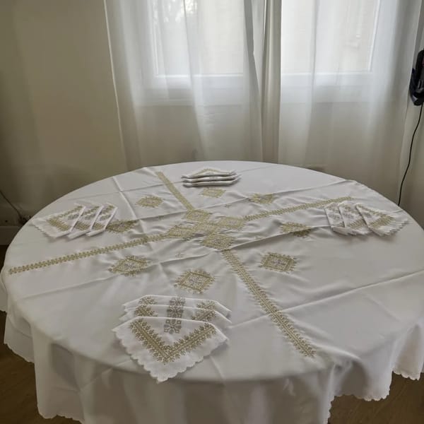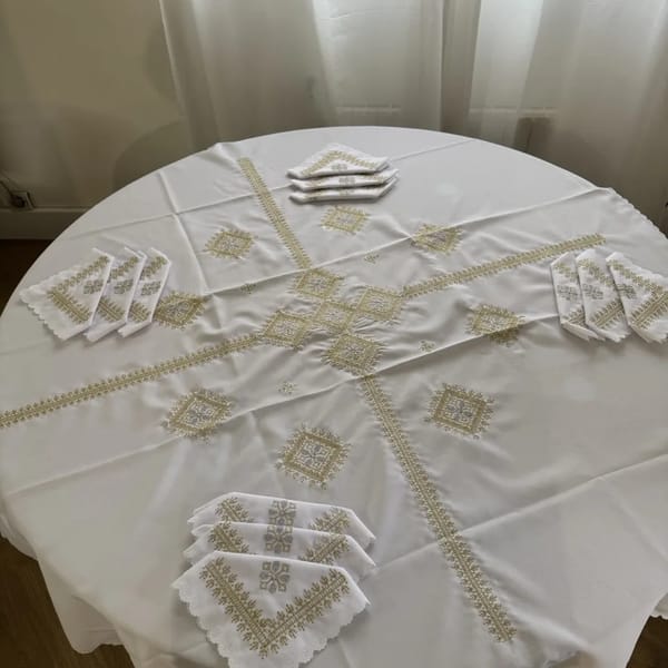 Étiquettes : brodé, cuir, décoration, Nappe, simili, table